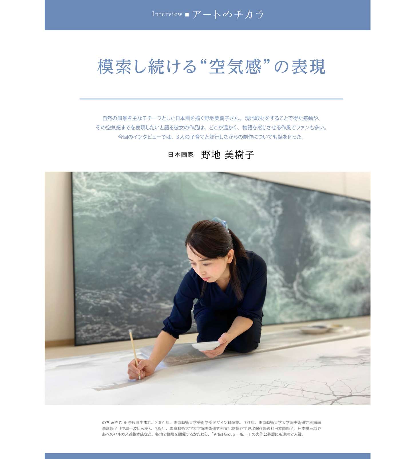 我已有十多年的收藏經歷,重點關注和收藏亞洲地區女性藝術家的作品,其中我最推崇備至的是日本女畫家野地美樹子的繪畫作品和台灣女書法家湯雅琁的書法作品。我相信,藝術不應該被性別界定,但女性在創作中常常能夠展現出獨特的美感和情感,讓我為之傾倒。