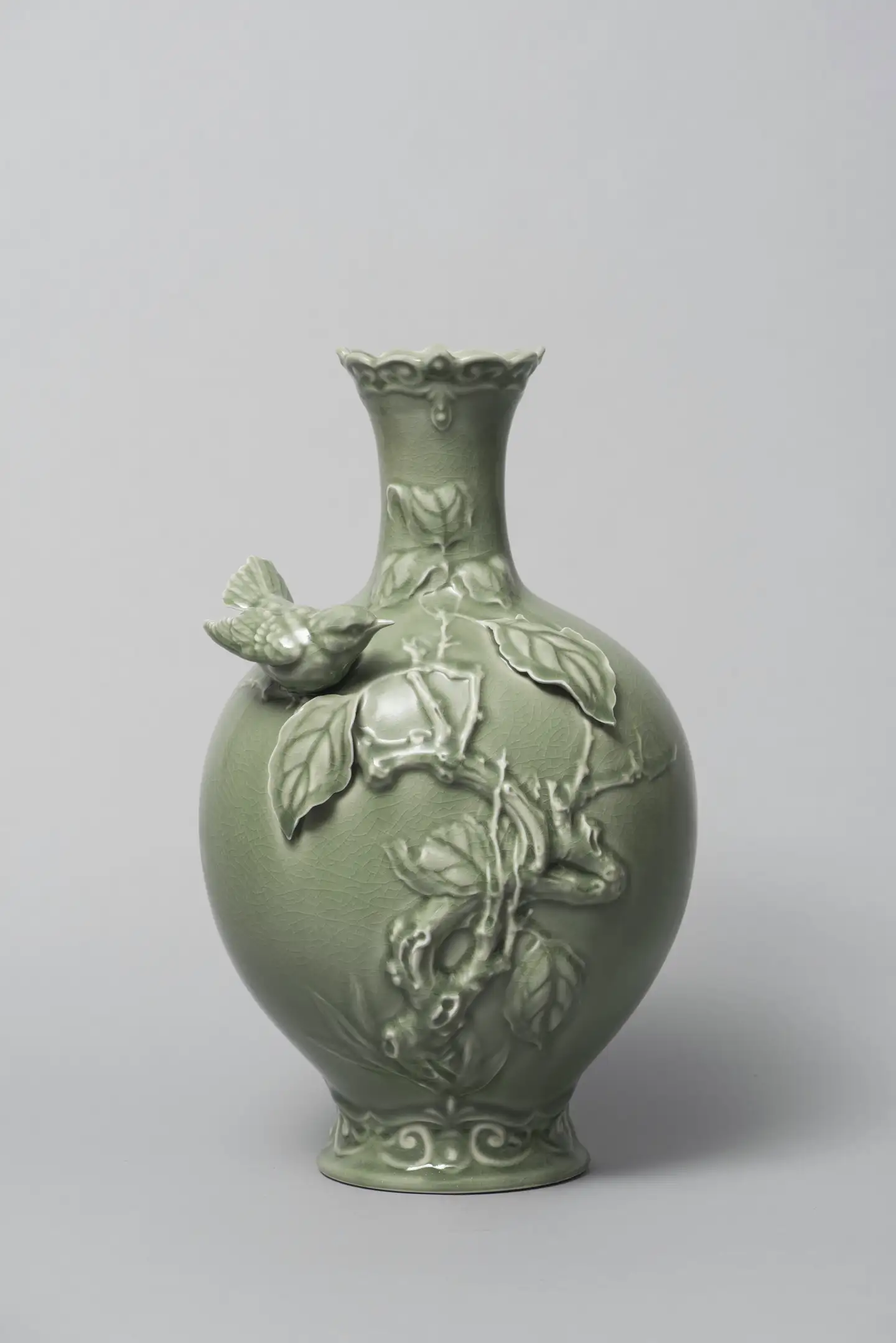 除此之外,陳鵬飛的越窯青瓷作品還注重與自然和諧共生。他的作品中常常運用自然元素,如山水、花卉、魚虫等,通過對自然的表現和詮釋,展現出人與自然和諧共生的美好狀態。